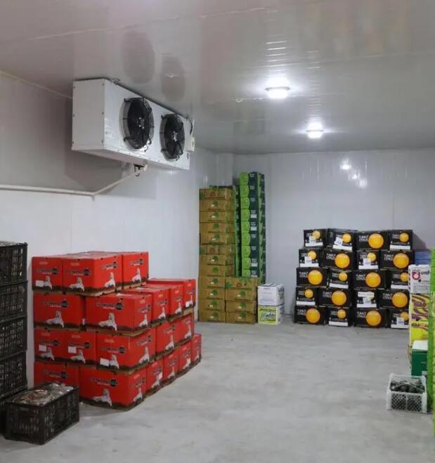 2、1號水果恒溫庫和2號水果恒溫庫制冷系統分別配備的是一套8HP和5HP美國艾默生谷輪中溫渦旋壓縮機組(含冷凝器、電磁閥、壓力控制器等),該機組制冷量大,性價比高,安全可靠。兩間冷庫內各配備了一套浙江凱迪系列高效強風型冷風機,該風機運行穩定噪音小,送風距離遠,使得庫內降溫速度快,極大增強了化霜效果,增加快速對流循環,從而達到每個角落的溫度均勻性。